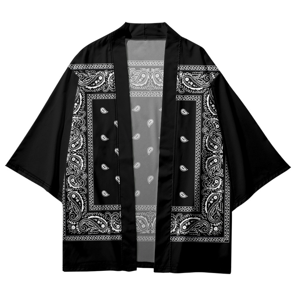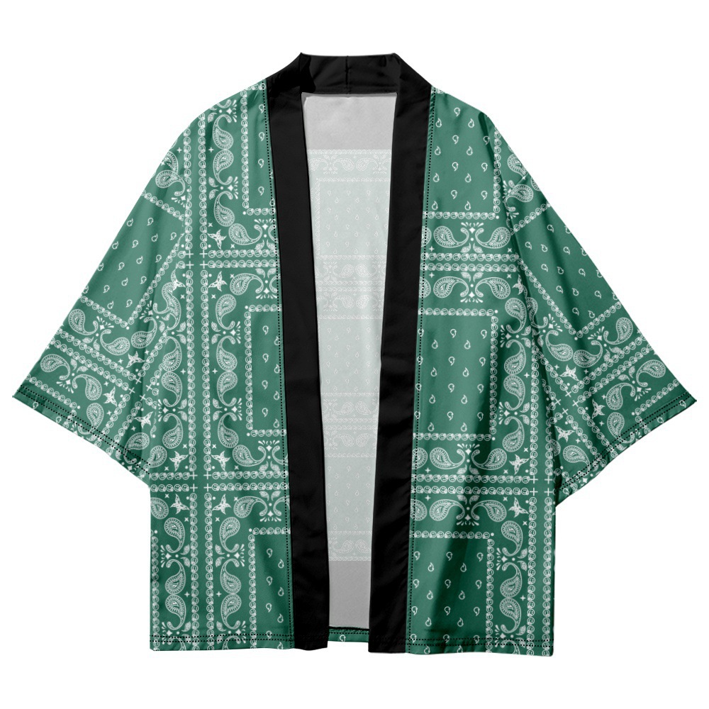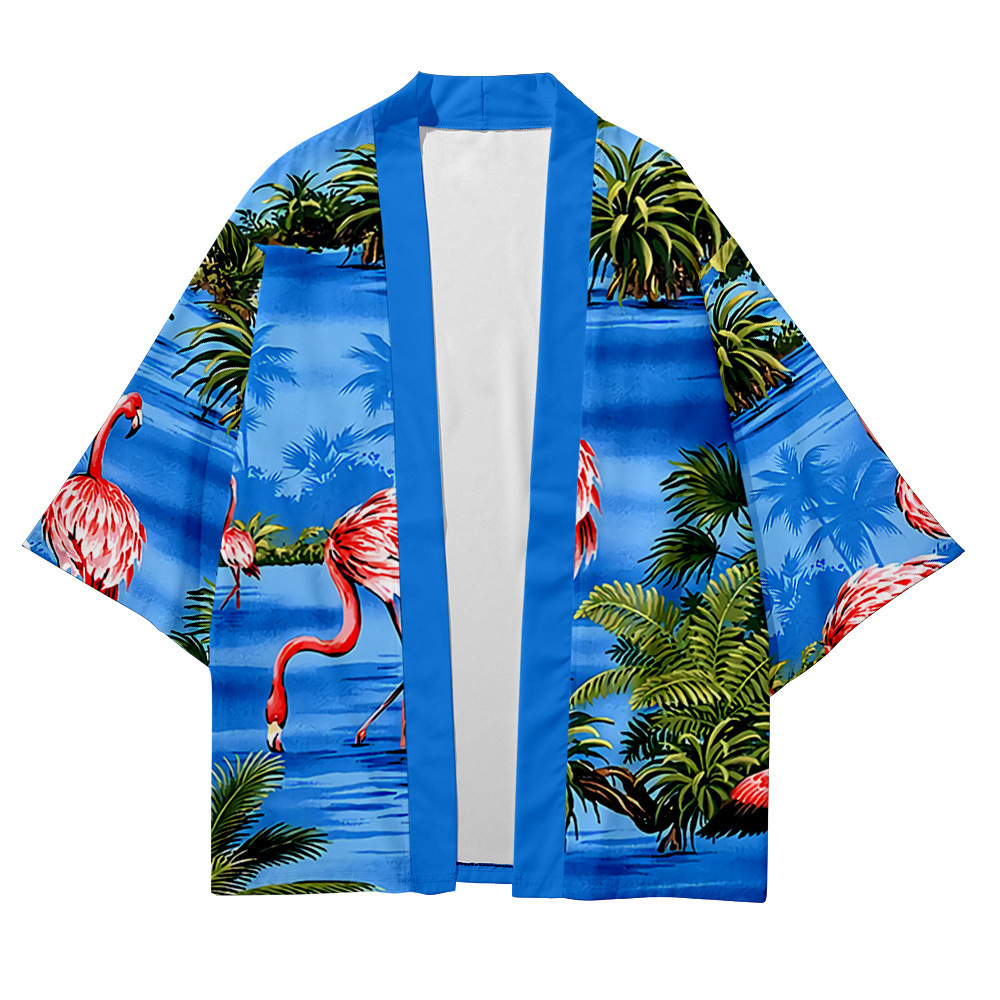 2023夏の着物クロスボーダー腰果花3Dプリント七分シャツ道衣カーディガンゆるい男羽织
