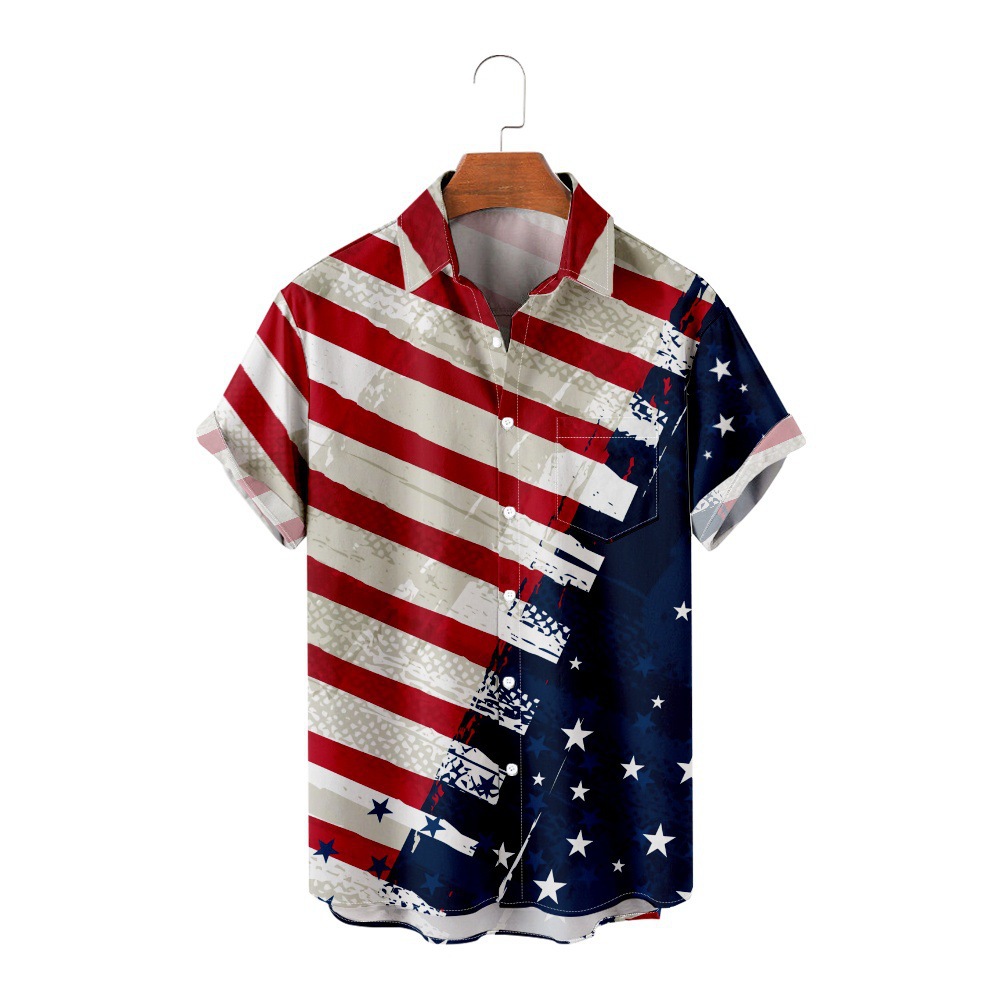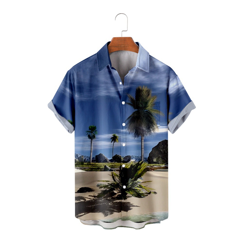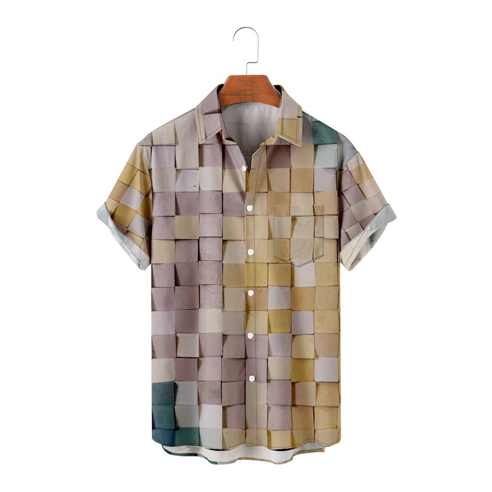 2023新作クリエイティブ要素3dデジタルプリントトレンドゆるい半袖ポケットシャツ男性大きいサイズ