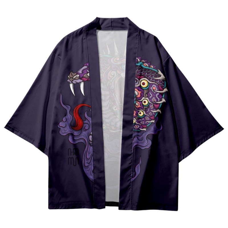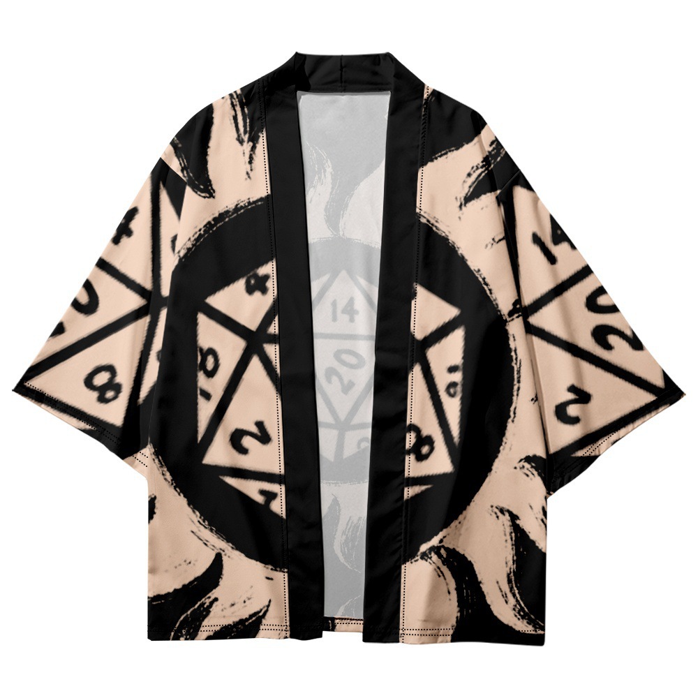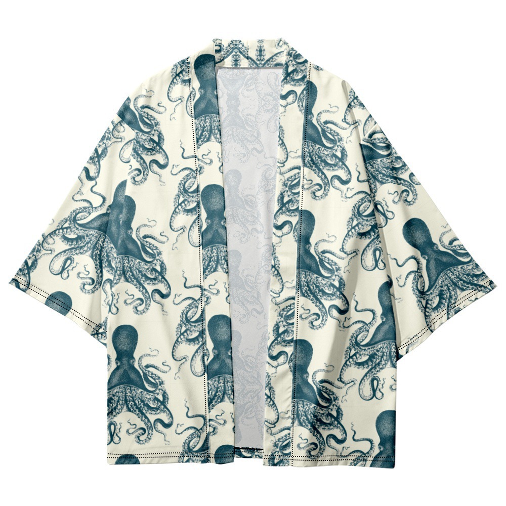 2023夏の着物クロスボーダーイラストプリント七分シャツ道着カーディガンゆるい男羽织