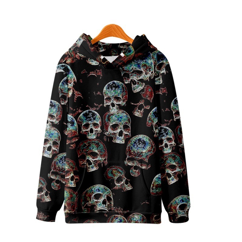 対外貿易2023国境を越えた新型頭蓋イラスト3dデジタルプリントガーディアン長袖丸首男女落肩衛