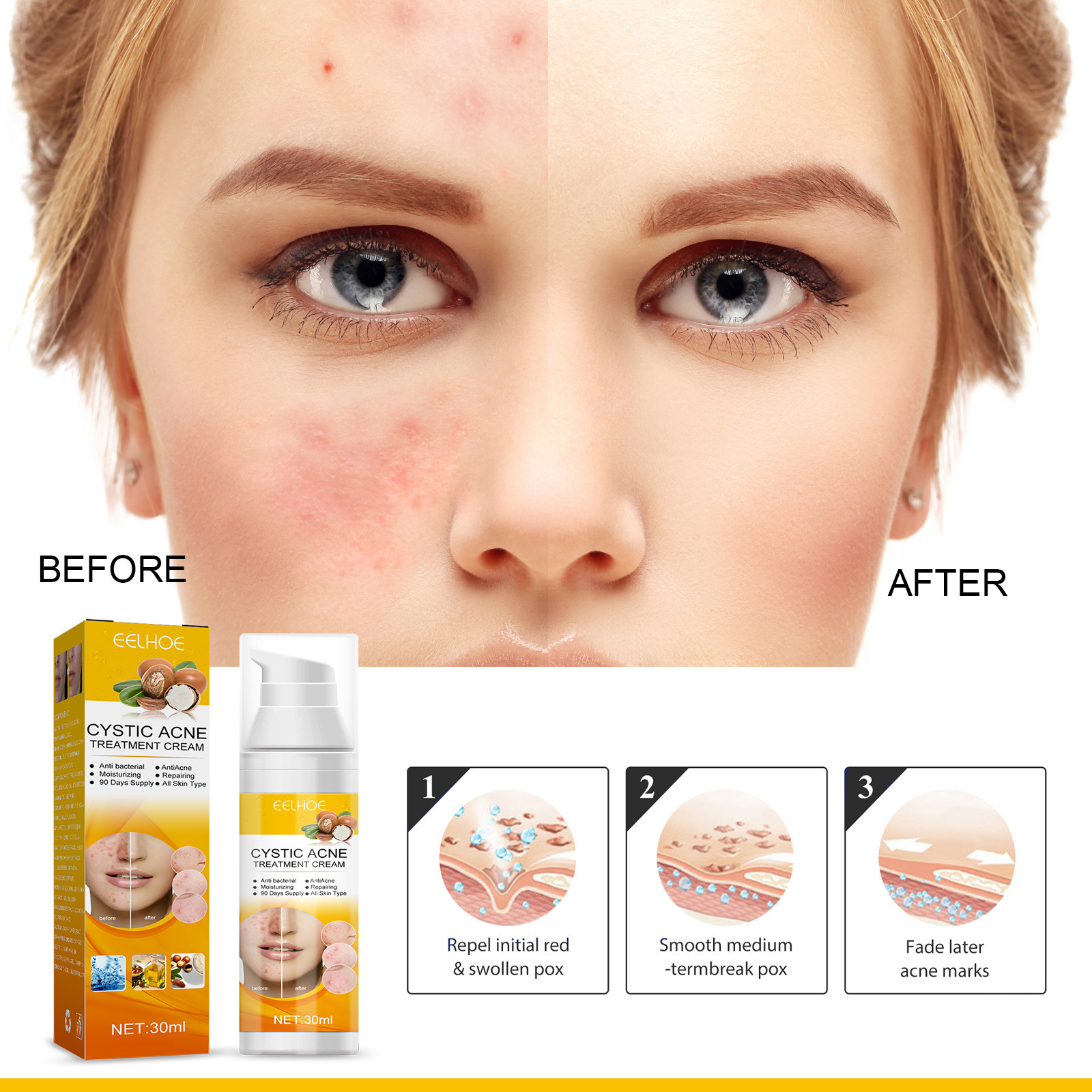 EELHOEにきびエッセンススキンケアにきびシミ解消口にきび収縮毛穴エッセンス