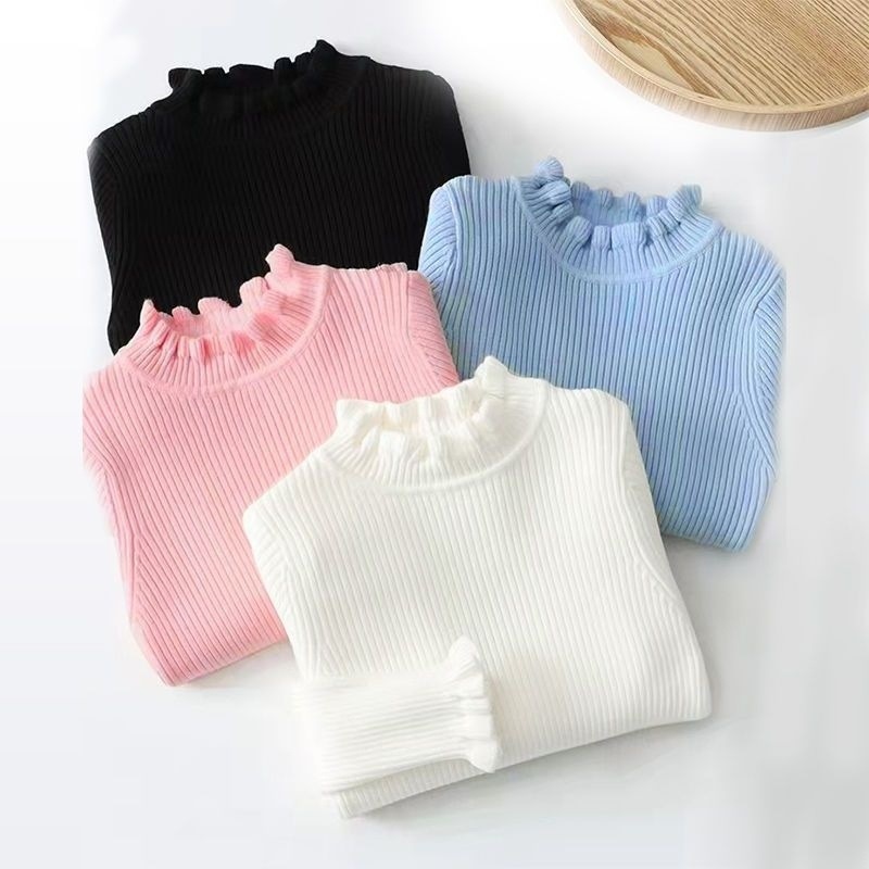 2024 春と秋の新スタイル女の赤ちゃんファッショナブルなスリムフィットボトリングシャツセーター無地耳多用途トップ