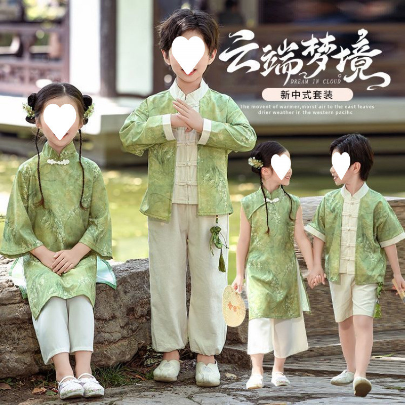 子供の漢服パフォーマンス服夏男の子唐装女の子チャイナドレス新中国風中国風幼稚園服
