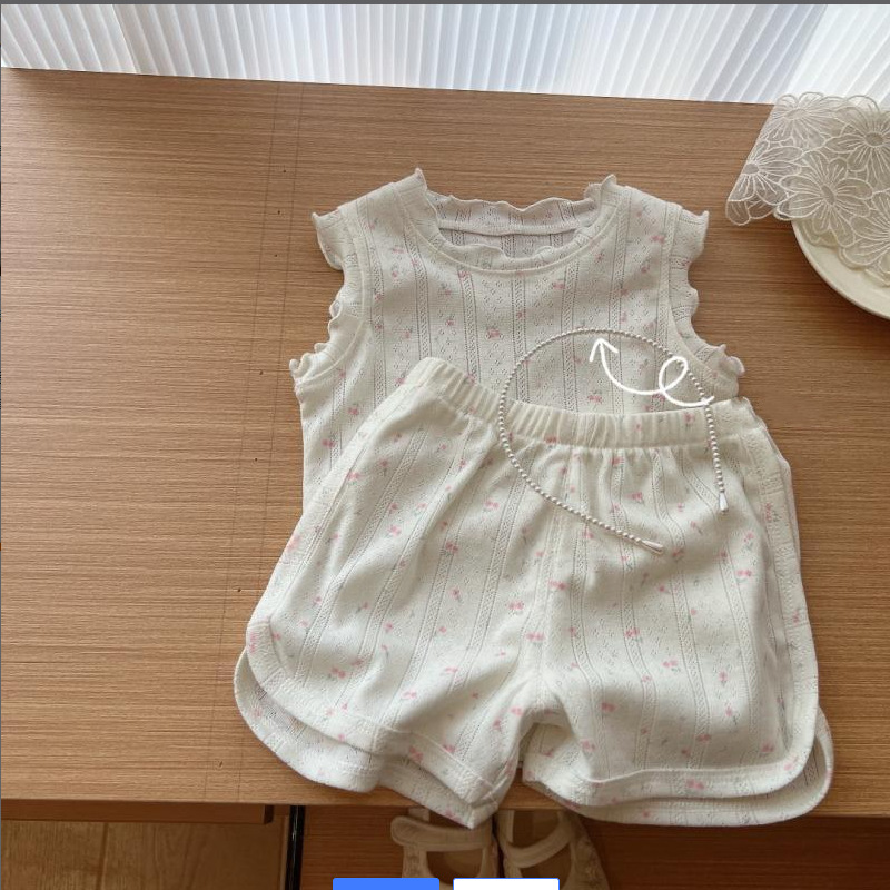 2025 新しい夏の女の赤ちゃんカジュアル花柄ノースリーブスーツホームスーツショーツ