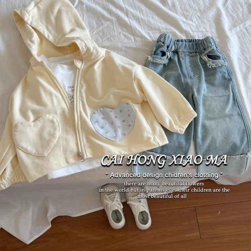 韓国子供服 2025 春の新スタイル女の子フード付きジャケット子供のファッショナブルでかわいい甘い薄い愛カーディガン