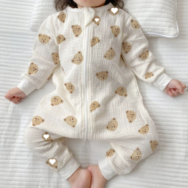 ベビー寝袋夏薄いガーゼ純綿春と秋の赤ちゃん開脚アンチキック男の子と女の子子供用ワンピースパジャマ