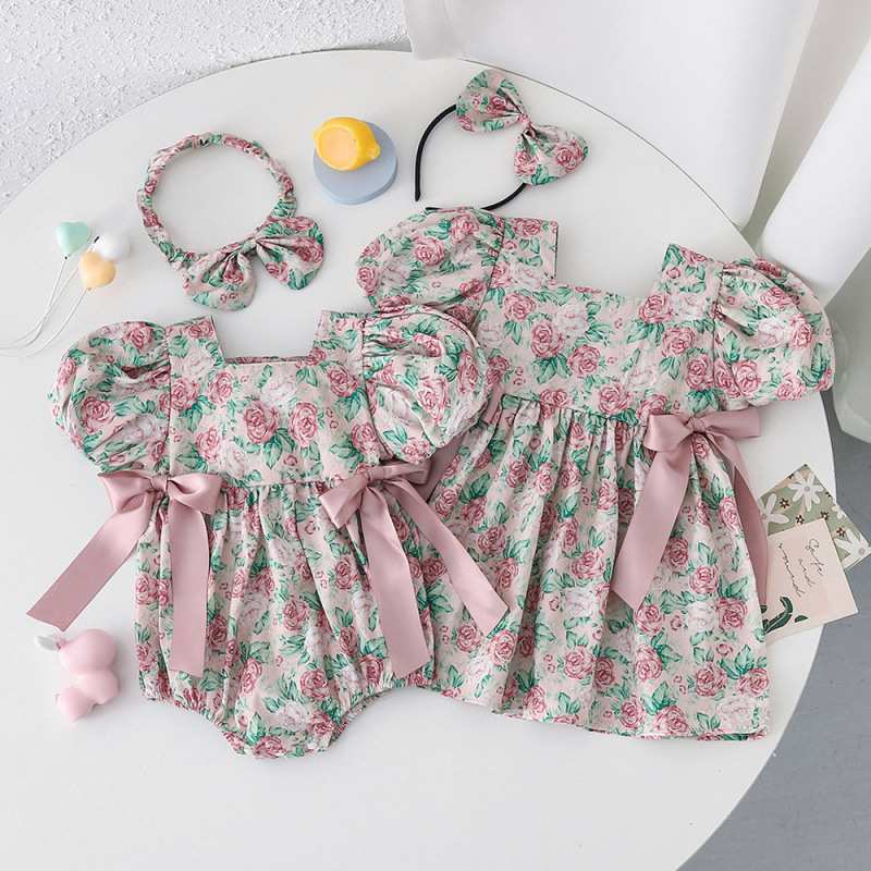ベビー服、女の子の春服、半袖ジャンプスーツ、姉妹服、女の子スカート、コットンプリンセススカート