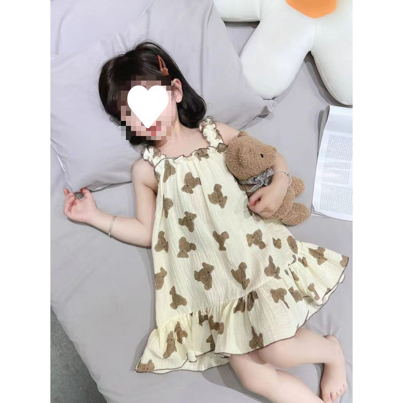 かわいいさくらんぼ熊の女の子の寝ているスカートのストラップの女の子のエアコン服のパジャマの夏の新型の子供の家の服は外に着ることができます。