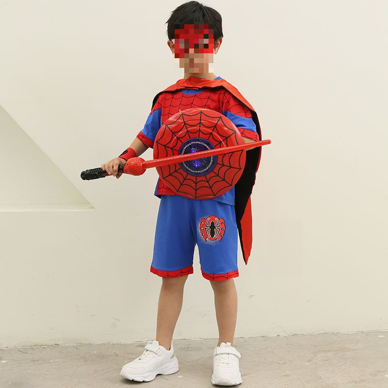 六一子供の公演の服装の男の子のスパイダーマンのスーツの幼稚園の化粧の舞踏会の役は演じます。