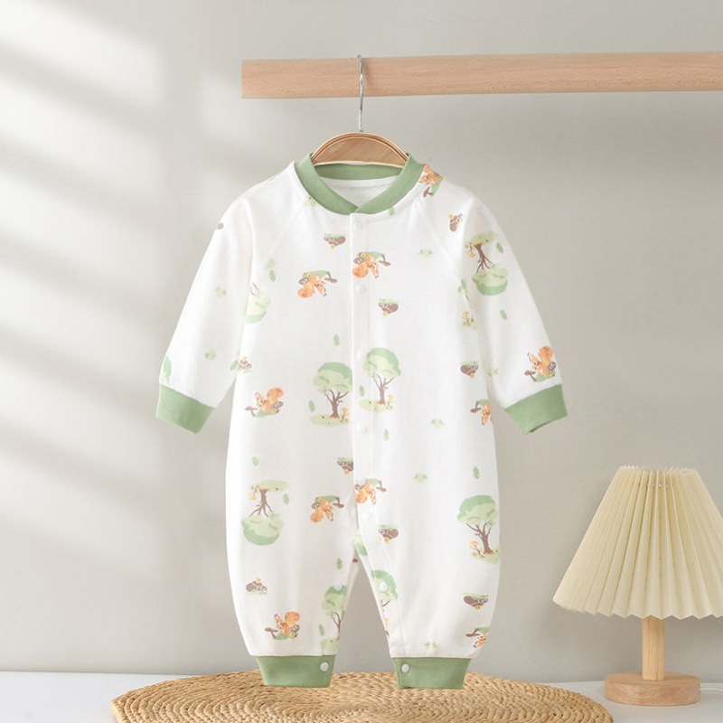 子供の純綿の骨のない春秋の金の連体服の赤ちゃんのパジャマの長袖は底のシャツの服を着ます。