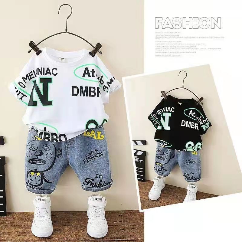 子供服男の子デニム赤ちゃんスーツ新品夏男の子洋気中子供かっこいい半袖2点セット潮童