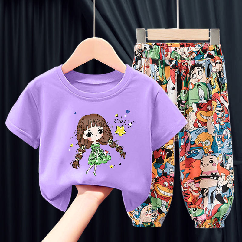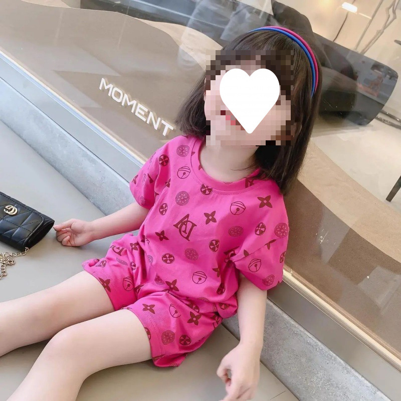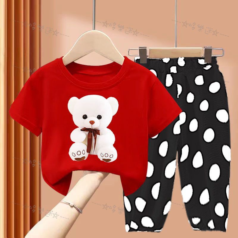 女の子の夏服セット2023新型子供の夏の洋風ネットの赤い子供服の女の子の夏の半袖の2つのセットのファッション