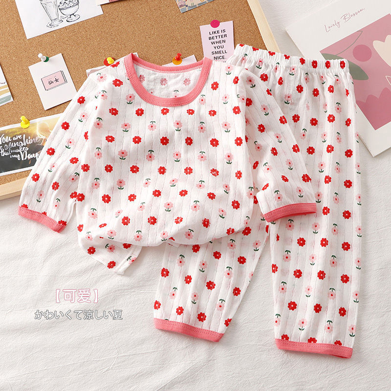 子供セット夏の新型綿シルクセット防蚊ズボン男児少女ネット赤2点セット