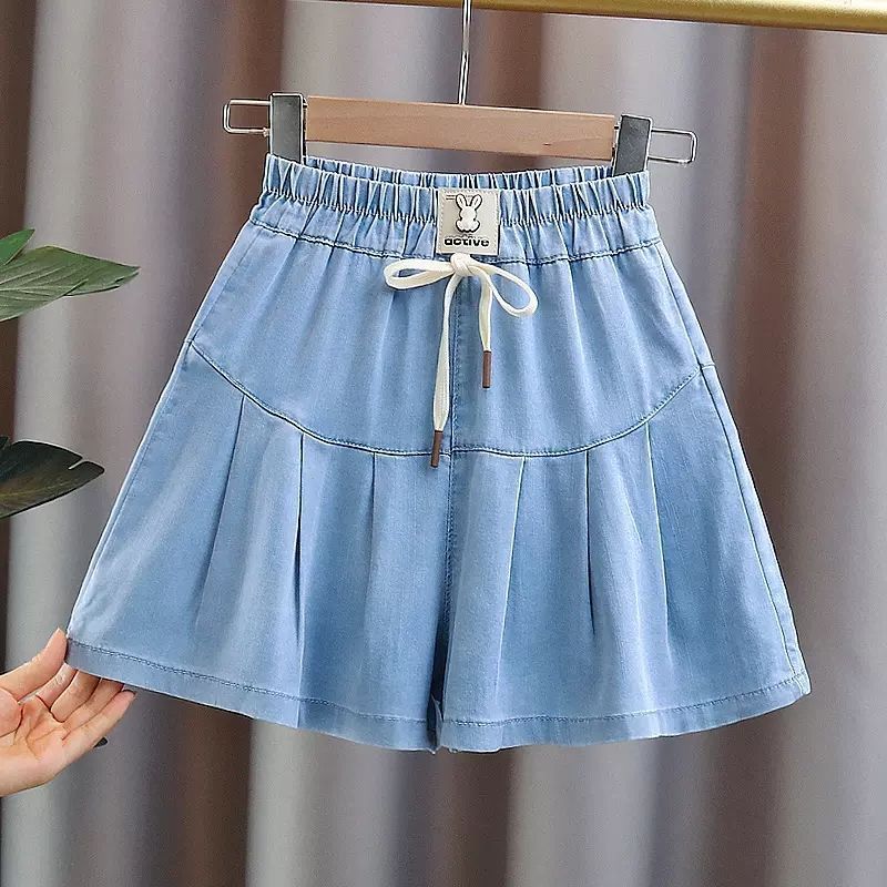 女の子の日糸デニムの半ズボンの夏の2023新型の流行の中で大きい子供のゆったりしているカジュアルな組み合わせの外でスカートのズボンを着ます。