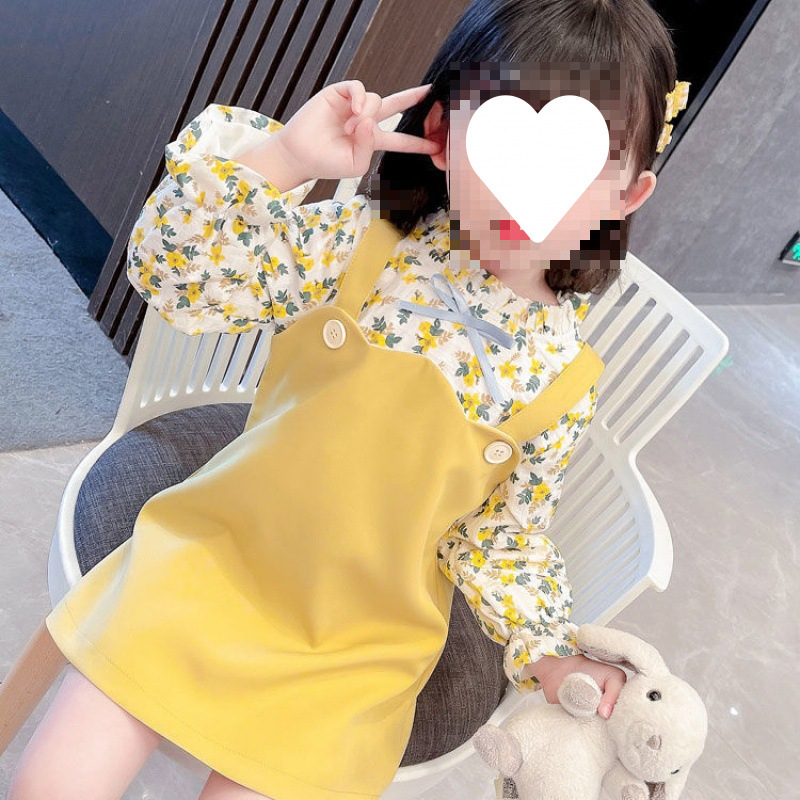 子供1-5歳の女の子の小さい清新なワンピース春秋子供服の新型の女の子の洋気の偽の2つの花のスカート