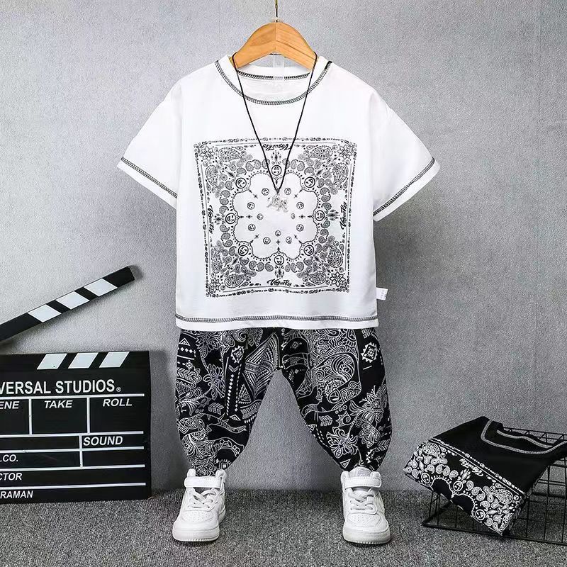 子供服セット2024新作氷糸防蚊ズボン洋気男児女の子夏服純綿半袖tシャツ2点セット