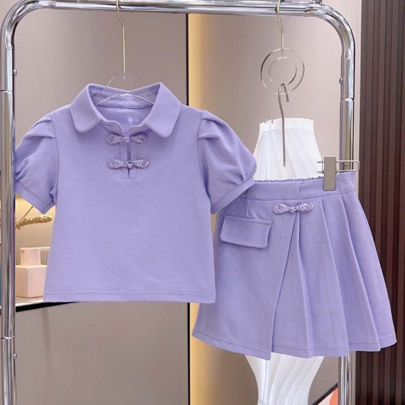 女の子の中の大きい子供のスーツの夏の中国風のスーツの子供の女の子のネットの赤い新しい中国式の6-12歳の2つの子供の服