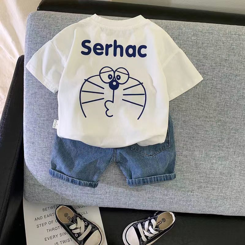 子供服男の子の夏服の韓国風のスーツの男の子のハンサムな半袖は猫の子供の赤ちゃんの服のファッションになります。