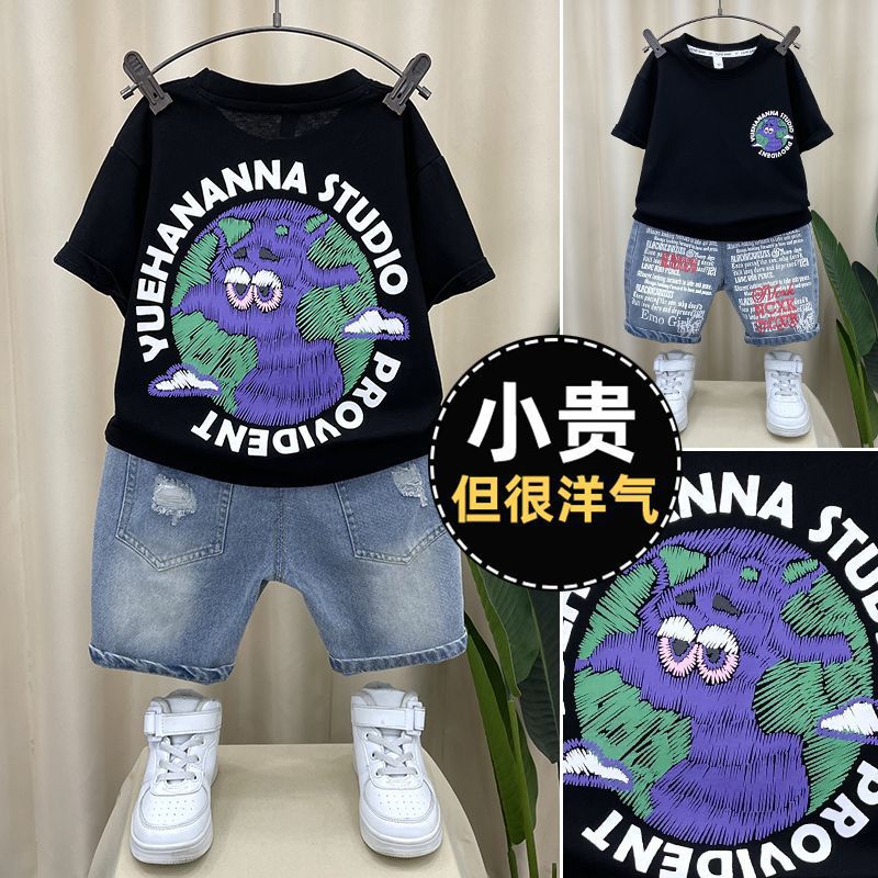 男の子の夏のスーツ23新型の洋気宝の薄いタイプの服の子供の流行の揚げ物の半袖の夏服の2つのセットの潮