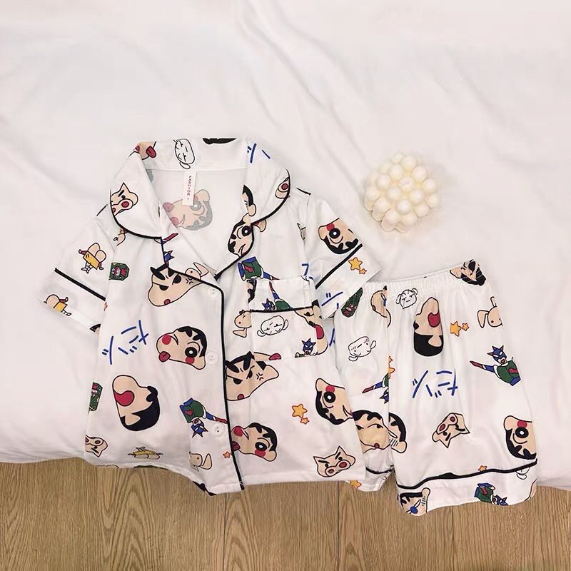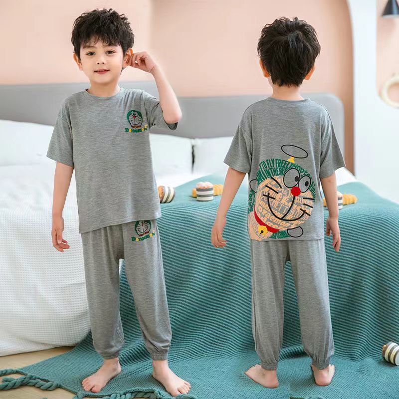 夏の新しい男の子のパジャマの子供のクレヨンしんちゃんの半袖セットの女の子の赤ちゃんの家の服の2つのセットの夏