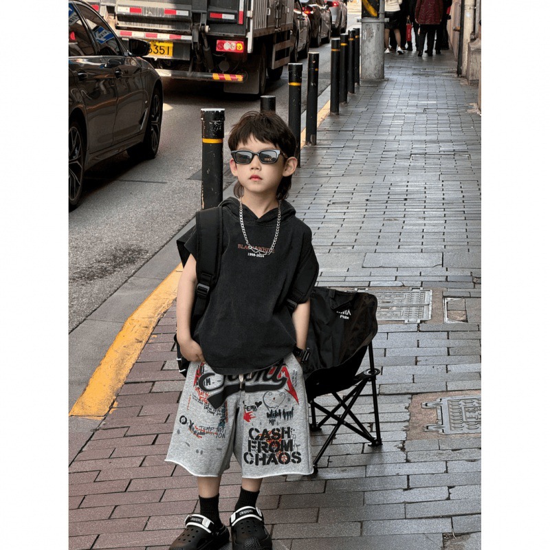 子供服男の子ベスト夏ノースリーブパンツ2点セットファッションカジュアルかっこいい落書きブーム