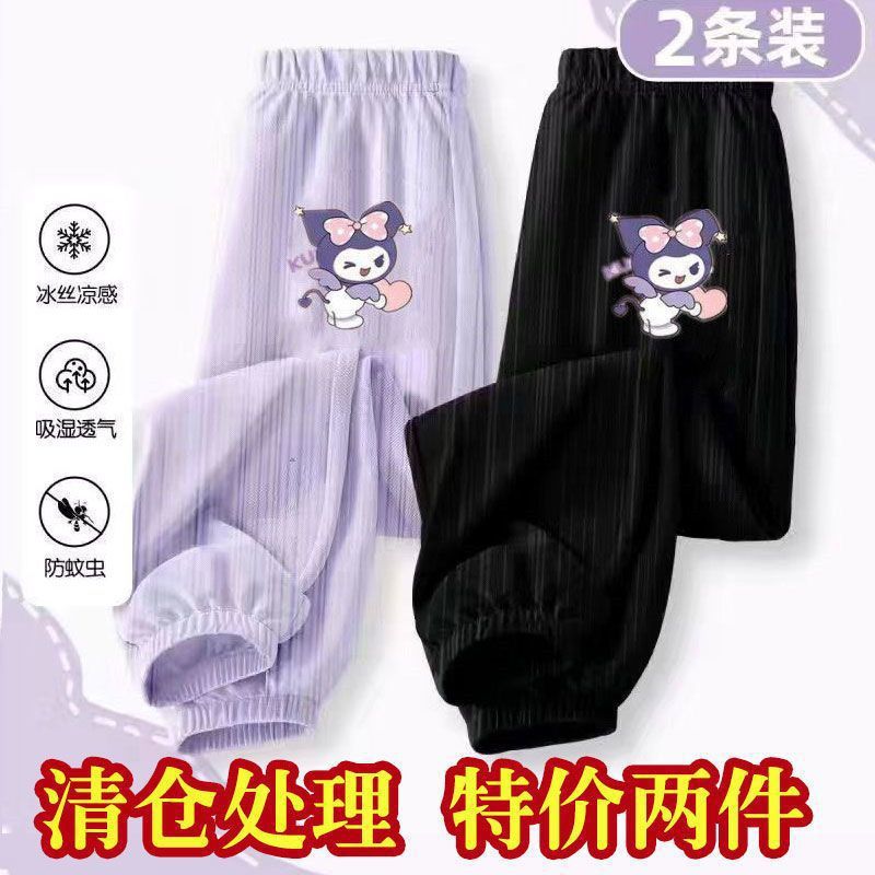 女の子の洋気氷糸防蚊ズボン2024新型夏の子供服は足の漫画の洛米のズボンの女の子を束ねます。