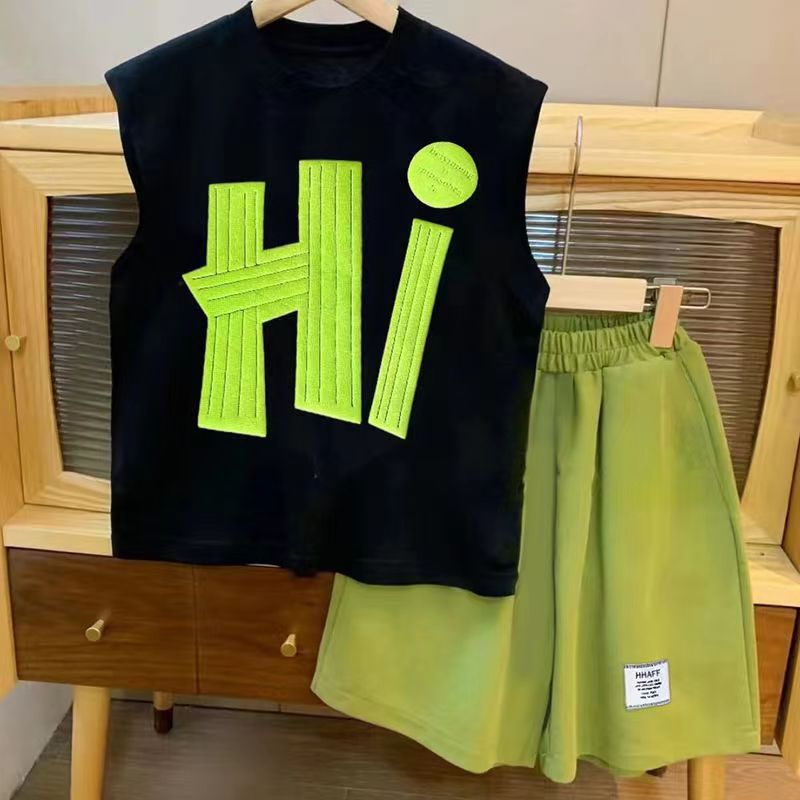 男児夏服セット2024新型児童ノースリーブベスト運動痞帅爆街服クールかっこいい夏童装