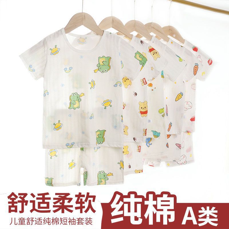 夏の赤ちゃん半袖パンツセット子供用エアコン服超薄型通気性綿パジャマ半袖ホームウェア
