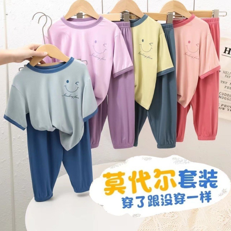 子供のモーダルパジャマの薄いタイプの7分袖のエアコンの部屋の服のスーツの春秋の小さい男の子の女の子の赤ちゃんは底を打ちます。