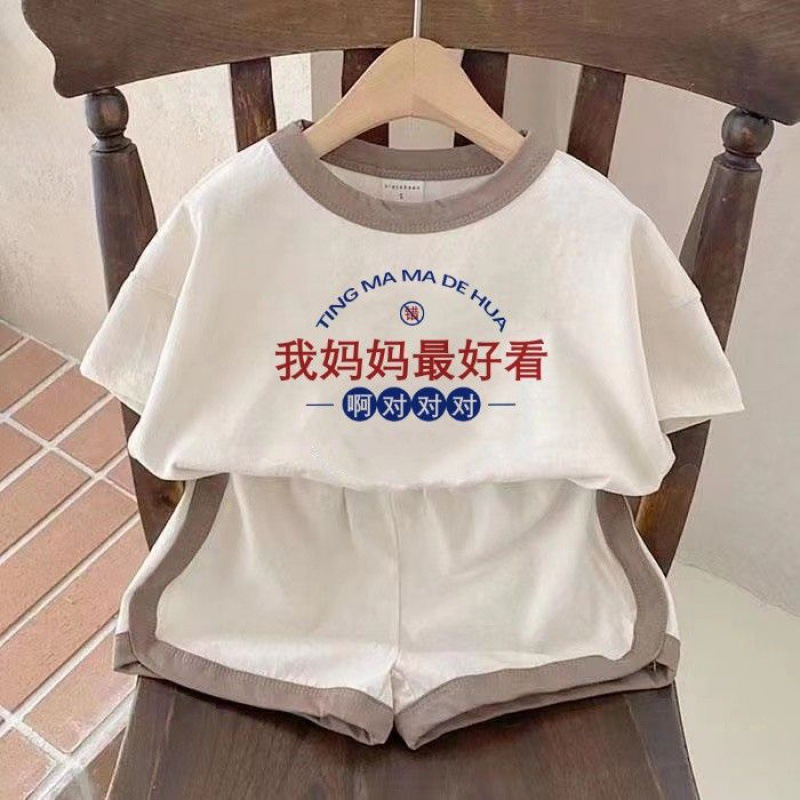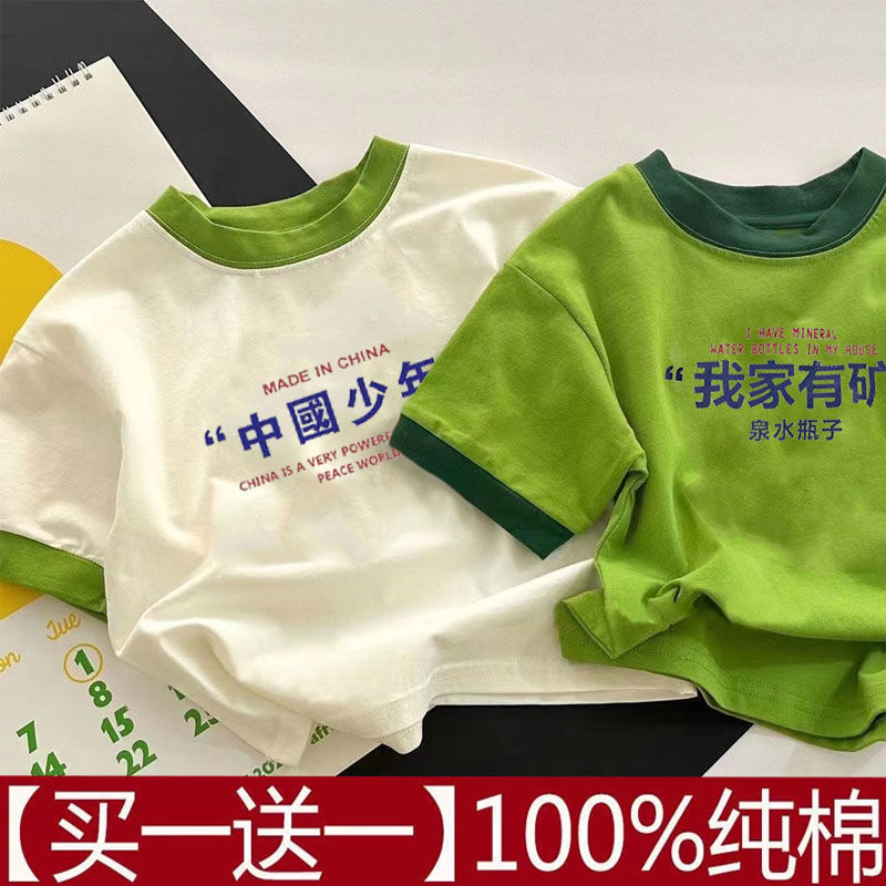 純綿2024新型男女児童半袖清華北大童装赤ちゃん夏児童印字シャツ