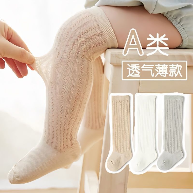 ベビー靴下夏の薄いメッシュ通気綿の長い筒が膝を越えて蚊を防ぐ赤ちゃんのエアコン靴下