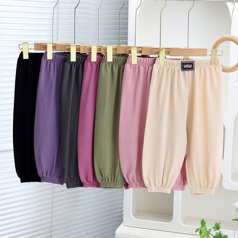 子供の夏の薄いタイプの防蚊ズボンの氷のしわの灯籠のズボンの中の子供の足首のズボンのカジュアルな百合の純色の子供服