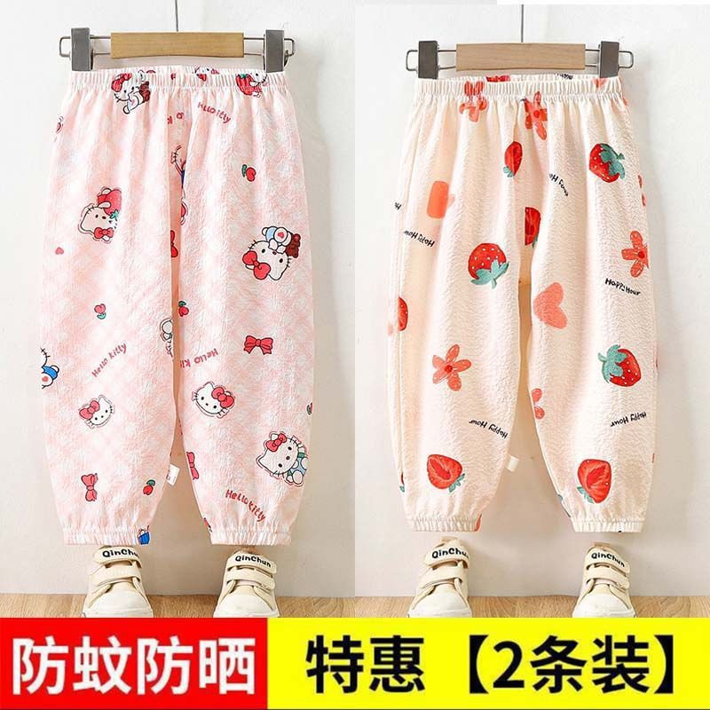 子供の蚊よけズボンの薄いタイプの男女の子供の夏の灯籠のズボンの赤ちゃんの夏のビーチのズボンのゆるいエアコンのズボン