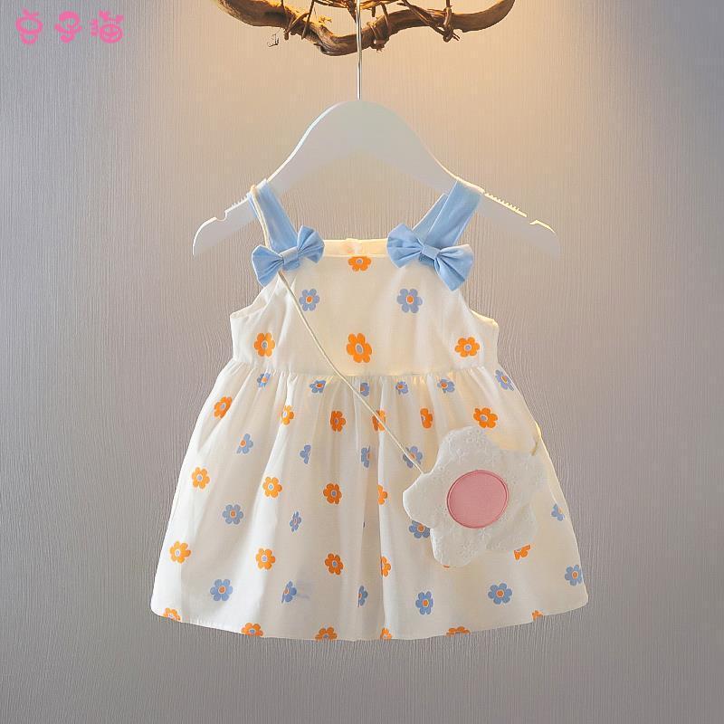 2024子供服の新しい女の子の夏服の女の子のワンピースの女の子の赤ちゃんのお姫様のストラップのスカートの子供のベストのスカート