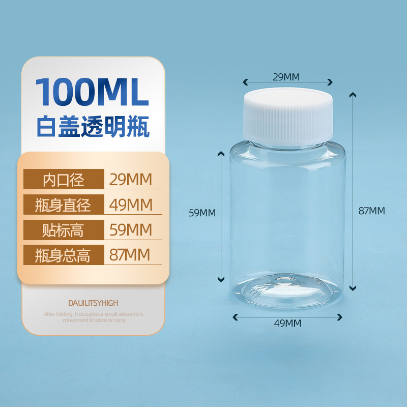 大口径透明ペットボトル透明分注ボトル100mlミリリットル密封分注プラスチックボトルカプセル瓶空ボトル