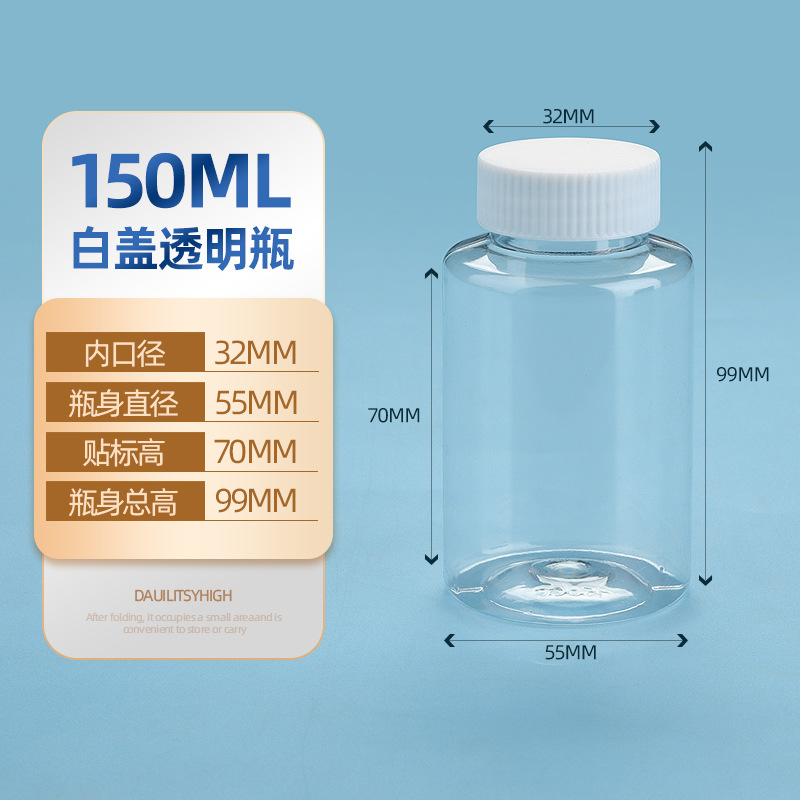 大口径透明空ボトルプラスチックボトル透明分注ボトル150mlミリリットルシール分注カプセルボトルプラスチックボトル