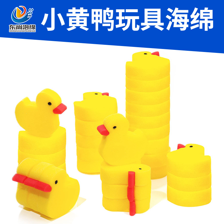小黄鴨はスポンジを吸い取ります。子供は水で遊んでいます。