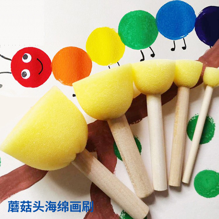 子供用落書きdiy絵画スポンジ円形スポンジブラシ5本ペンブラシキノコ頭スポンジ印鑑落書きスポンジ