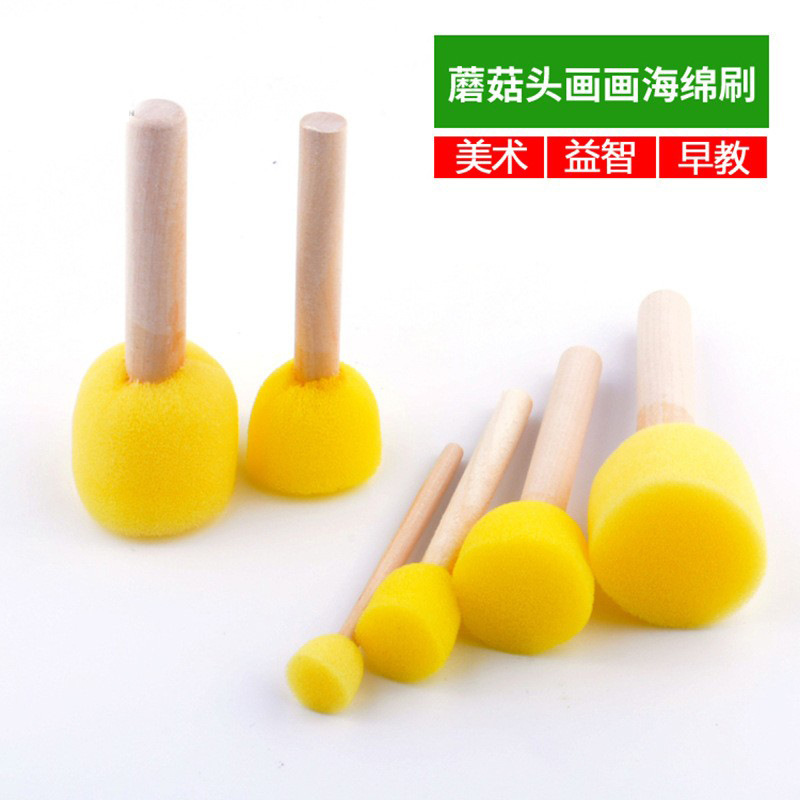 クロスボーダー落書きツールスポンジキノコ頭子供diy絵画スポンジ印鑑円形木柄スポンジブラシ