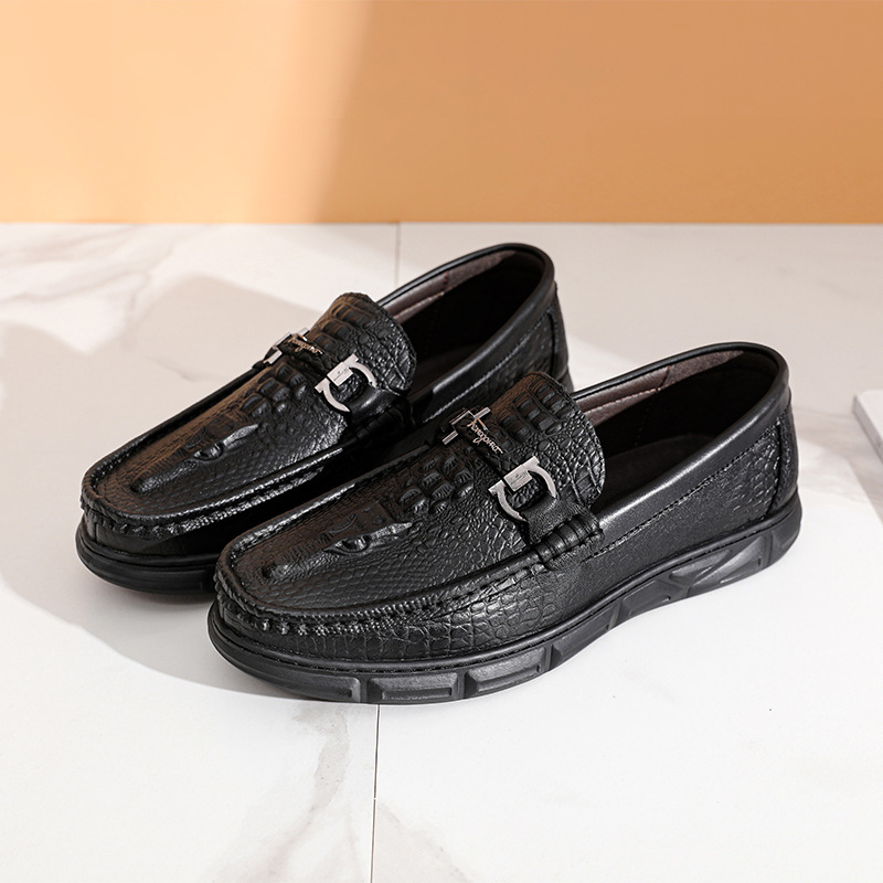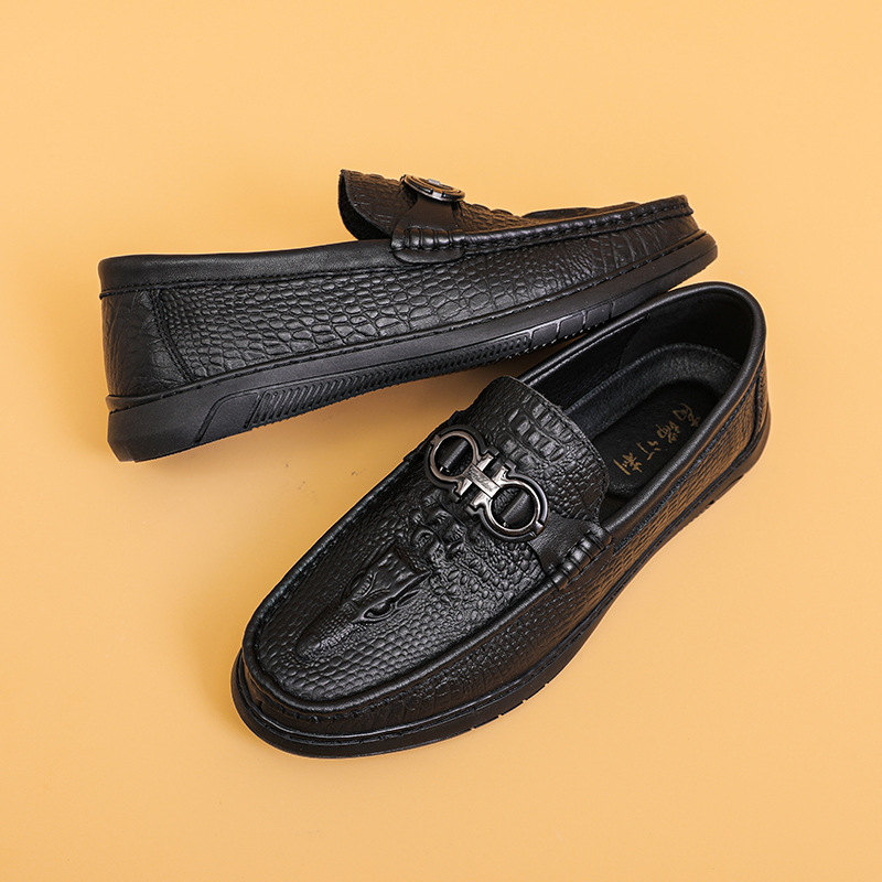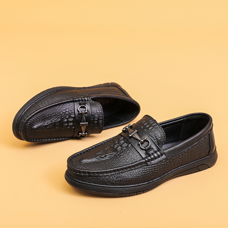 ワニの紋様の頭の層の牛革のビジネスの靴の男性の本革は足をかぶせて怠け者の靴の柔らかい底のお父さんの靴を踏んで車の靴を運転します。