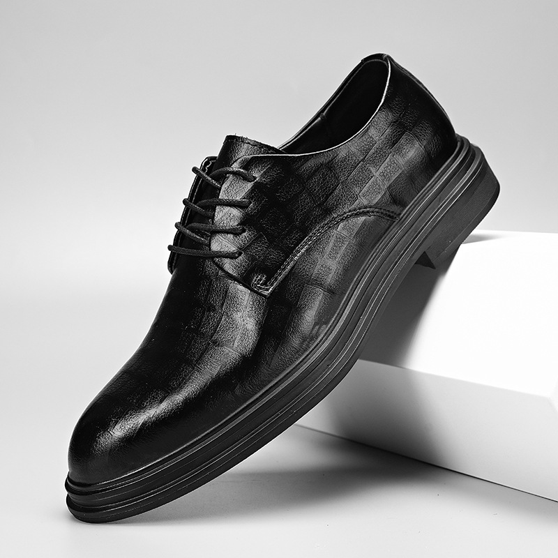 男性カジュアル革靴男性丸頭セットビジネススーツ正装作業男靴英倫風軟底低靴