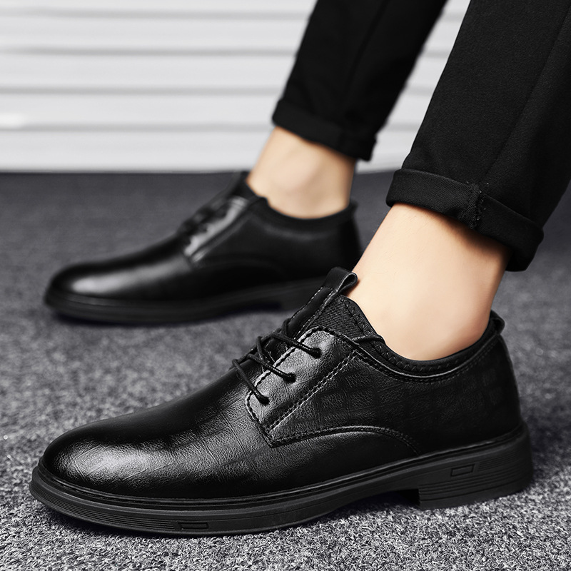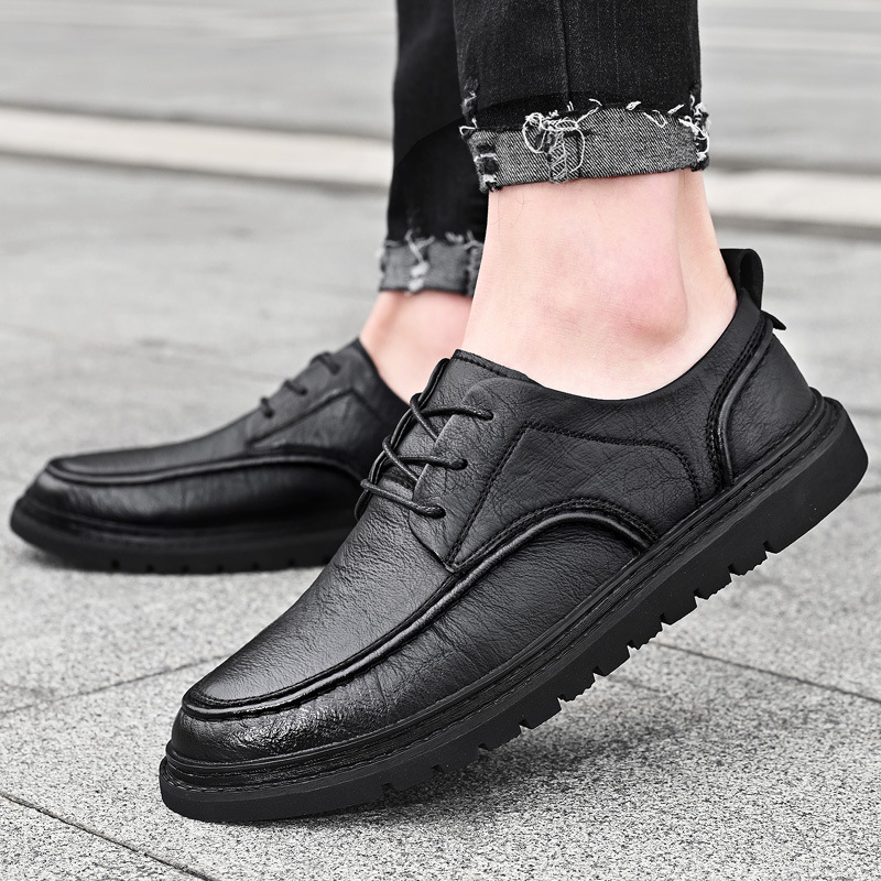 男性カジュアル革靴男性丸頭セットビジネススーツ正装作業男靴英倫風軟底低靴