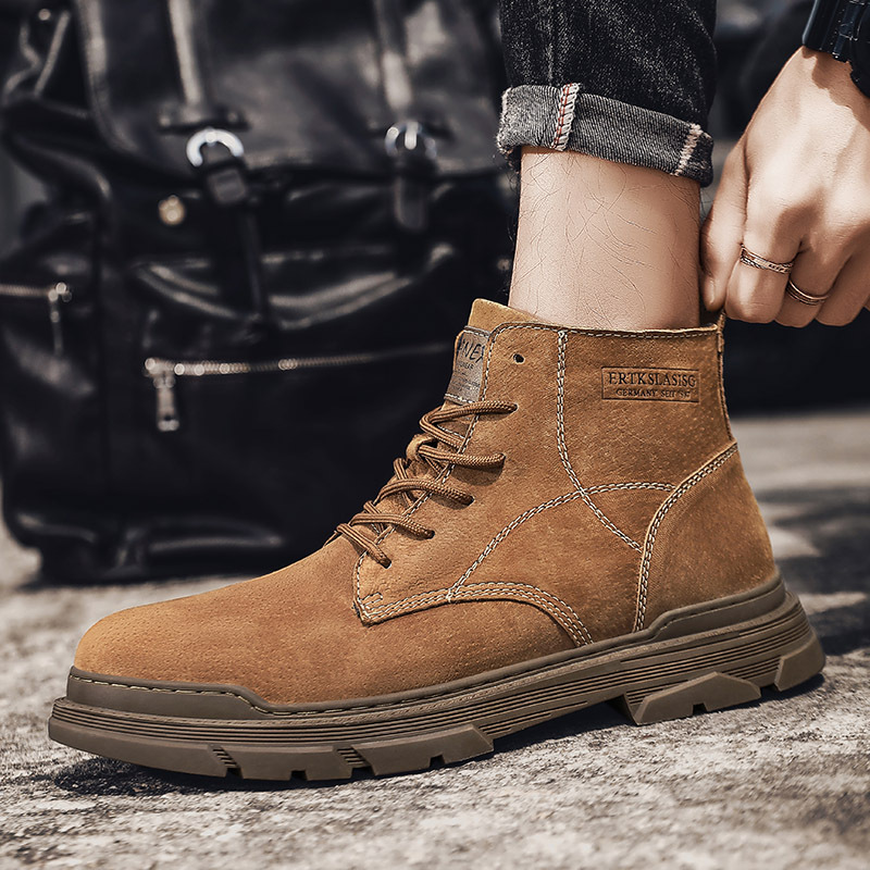 ネット赤秋冬真皮マーティンブーツ男百合英倫風高助靴戦術靴潮男中助工装ショートブーツ
