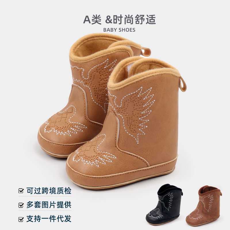 新しい赤ちゃんのショートブーツ冬の柔らかい底の滑り止め女の赤ちゃんの洋気西部のデニムの皮の靴の赤ちゃんの靴