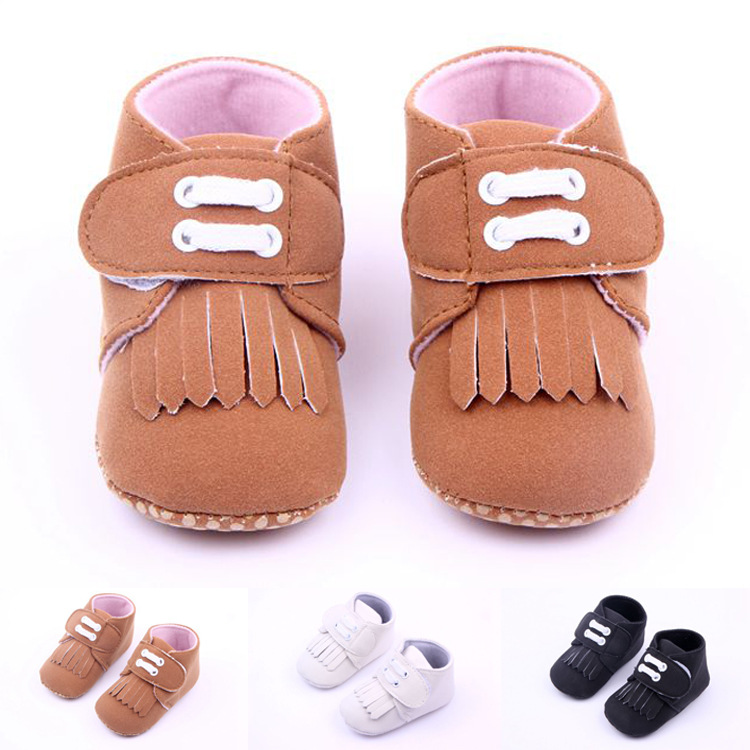 新型の外国貿易の赤ちゃんの靴の卸売りの環境保護の柔らかいpuのマジックはボタンの学歩の靴の赤ちゃんの靴を貼り付けます。