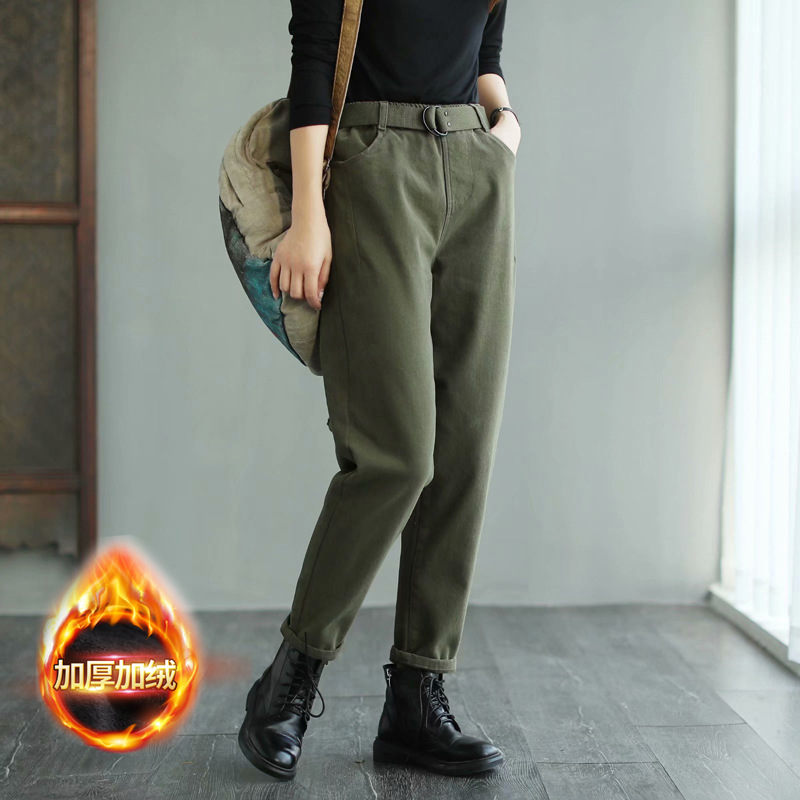 7865韓国版冬のベルベットのハーレムズボンの女性の小さい足の弾力性のカジュアルなズボンの高い腰の毛のズボンの保温のズボン