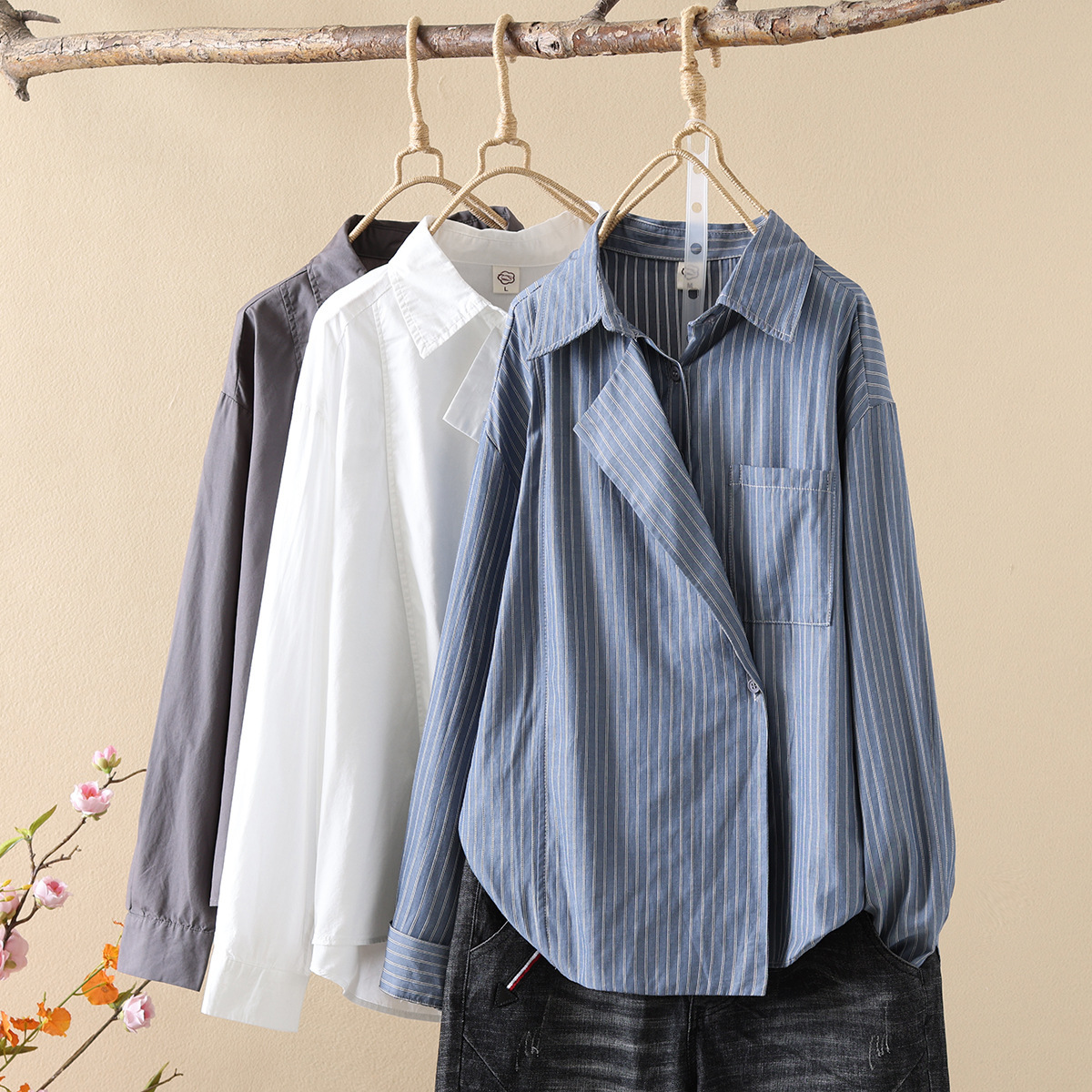2024秋の新型韓国版ストライプ長袖シャツはシンプルでゆったりとしたデザイン感があります。