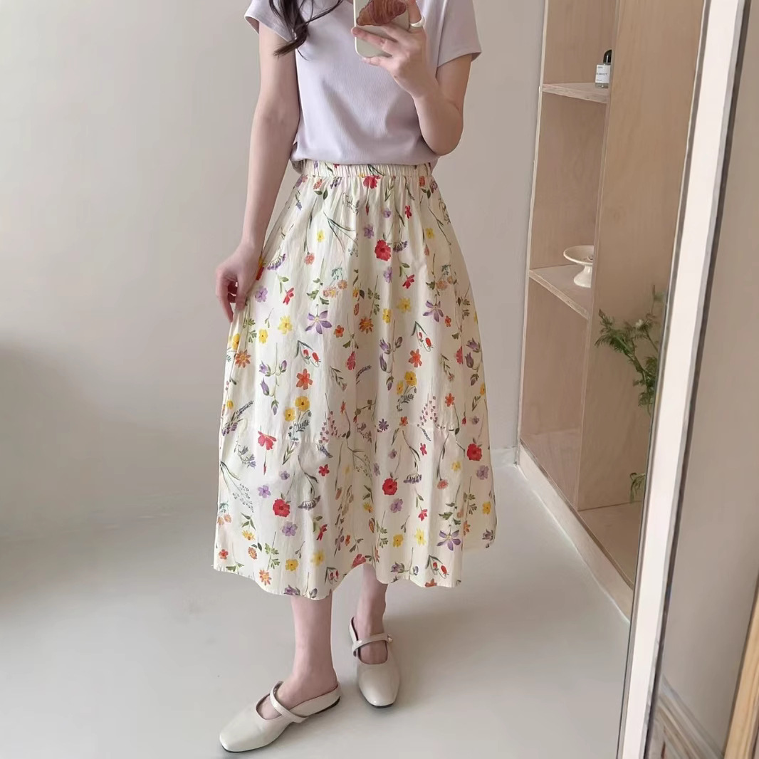 小清の新型のデジタルの花の半身のスカートの女性の2025春の服装の新型のゆったりしている文芸の中で長いスカートの45453