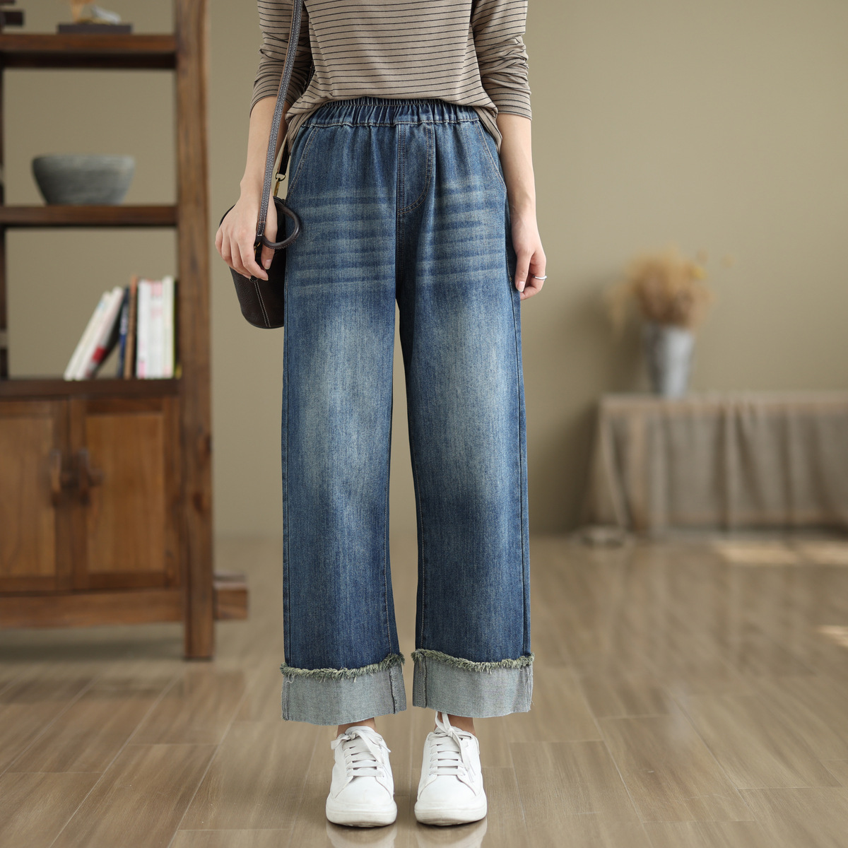 8824-76洋気が腰の光板を締めてデニムのワイドパンツをつなぎ合わせます。