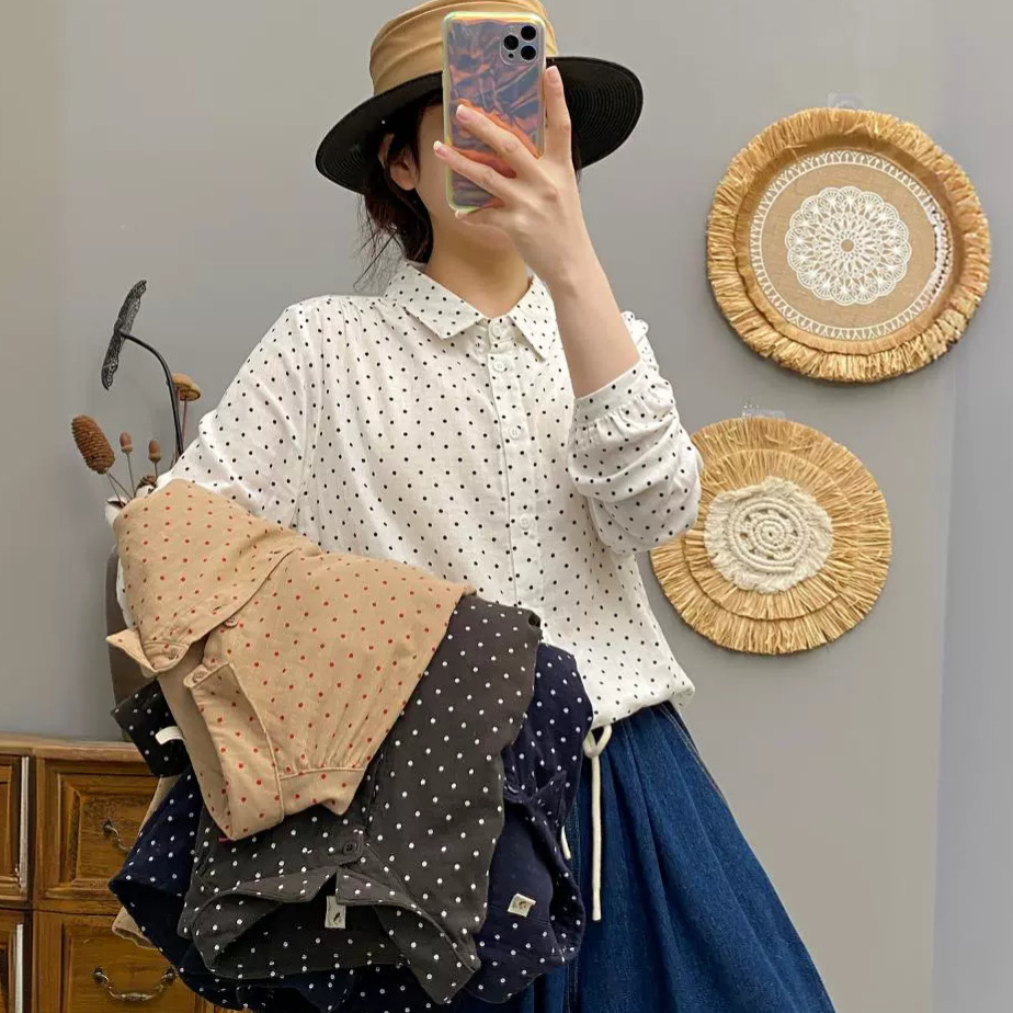 9512洋気波点プリント単列ボタン長袖シャツ女2024春装新商品ゆるい着痩せ上着